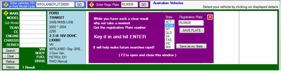 | Oscar has a feature which allows pre-loading a vehicle against the 'Rego Plate', This allows you to build a history of customer vehicles that can be rapidly retrieved on subsequent visits simply by typing the customer's registration plate |